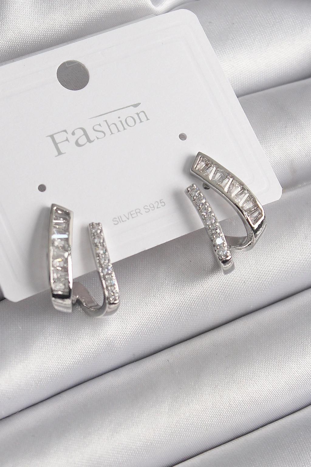 Erb Pirinç Gümüş Renk Zirkon Taşlı Kadın Küpe