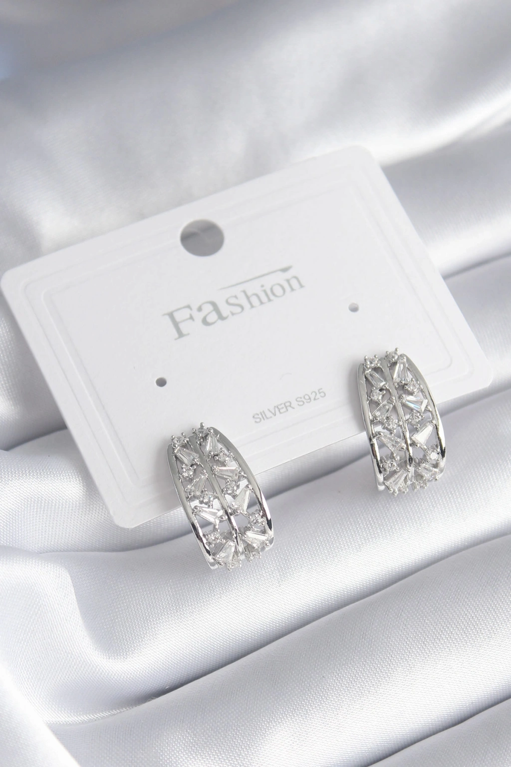 Erb Pirinç Gümüş Renk Zirkon Taşlı Kadın Küpe