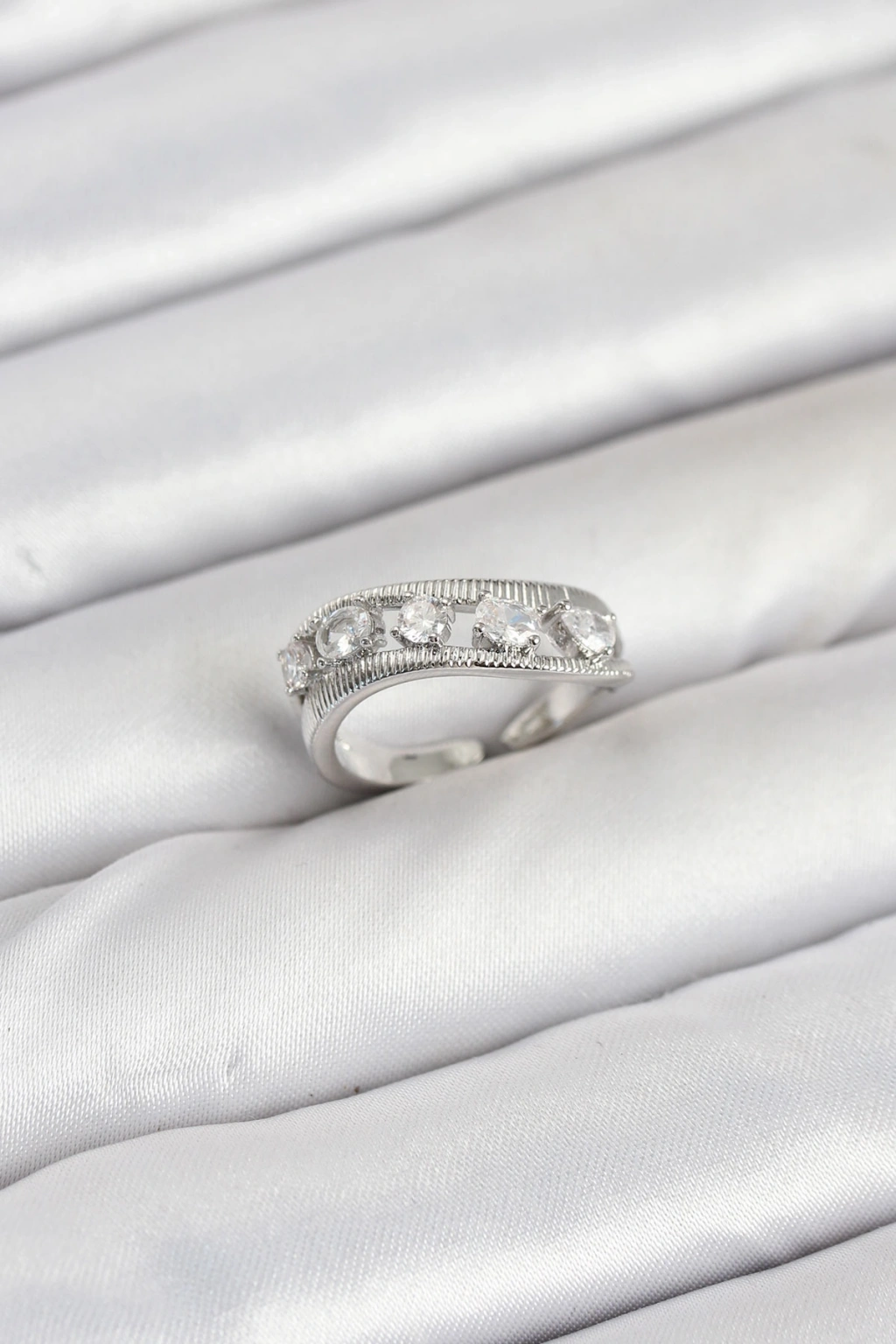 Erb Pirinç Gümüş Renk Zirkon Taşlı Kadın Yüzük