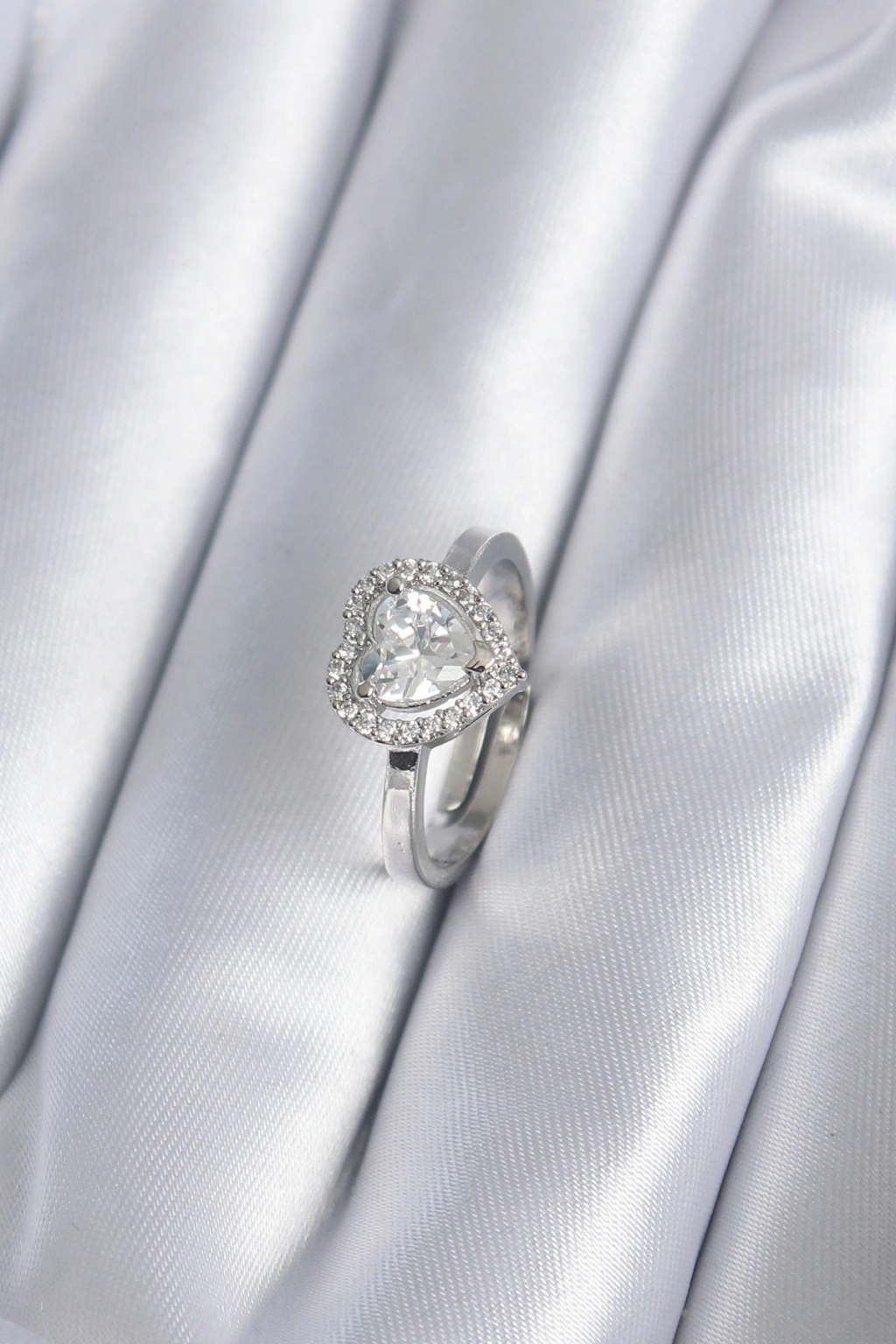 Erb Pirinç Gümüş Renk Zirkon Taşlı Kalp Charm Model Kadın Yüzük