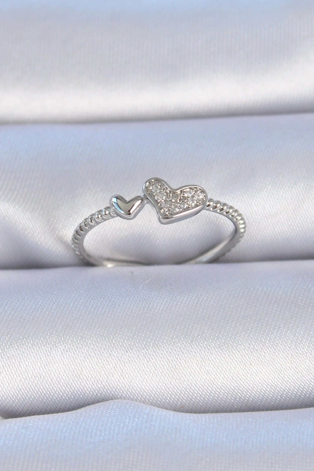 Erb Pirinç Gümüş Renk Zirkon Taşlı Kalp Model Kadın Yüzük