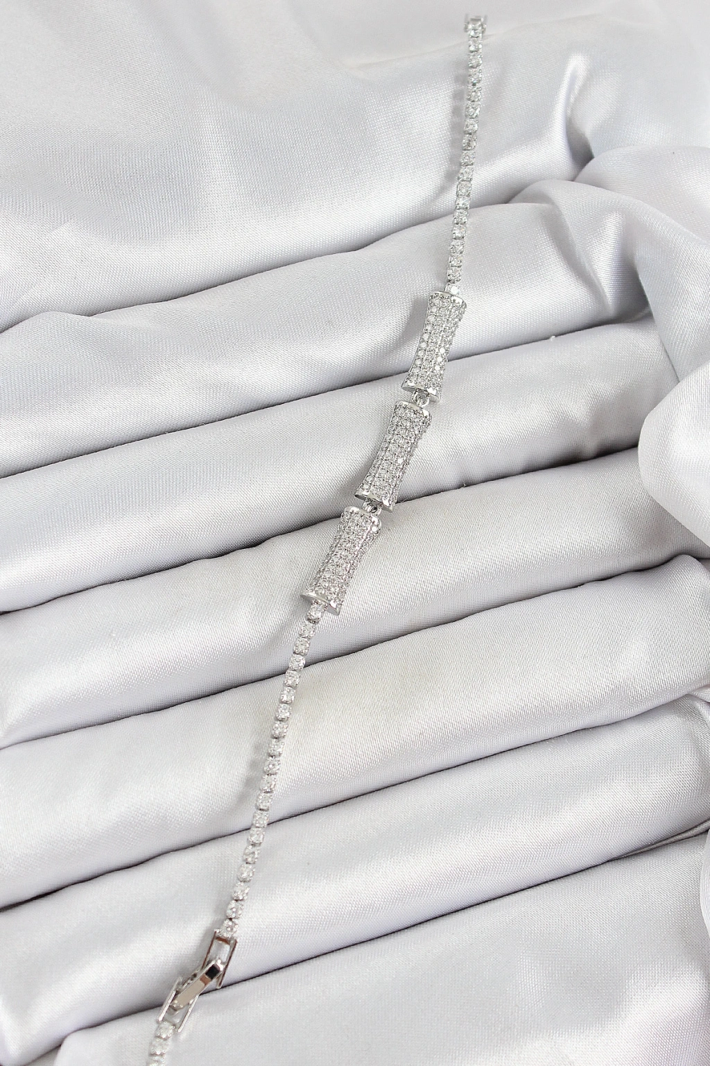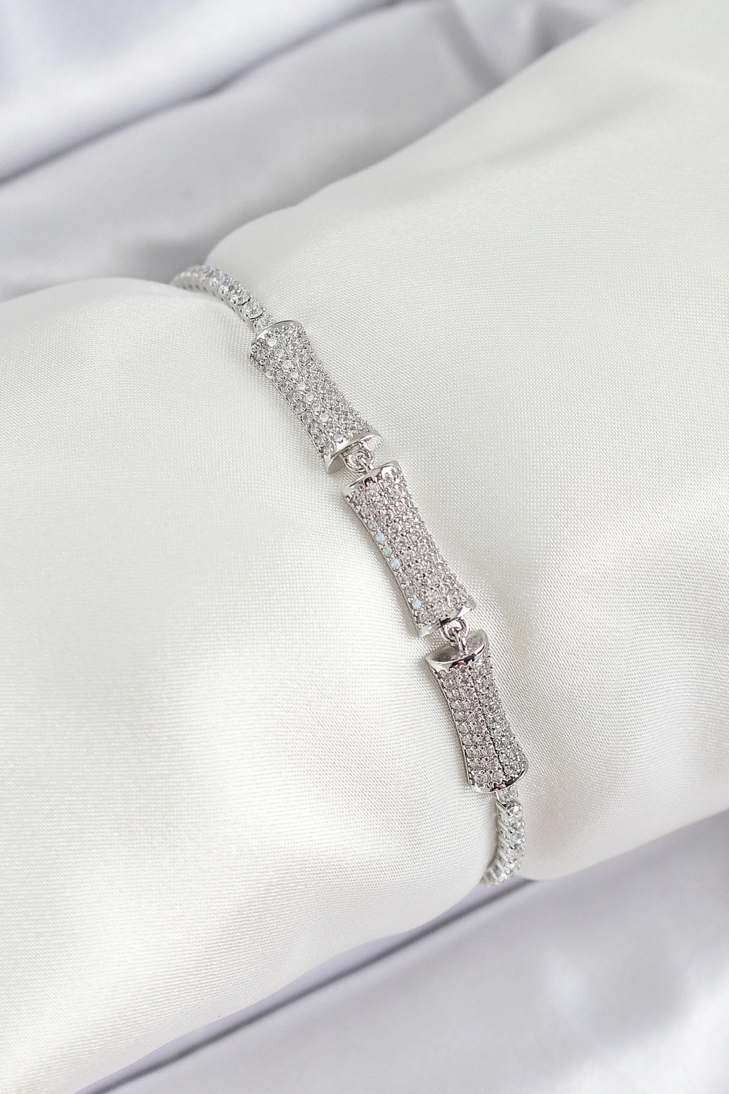 Erb Pirinç Gümüş Renk Zirkon Taşlı Kemik Model Kadın Bileklik