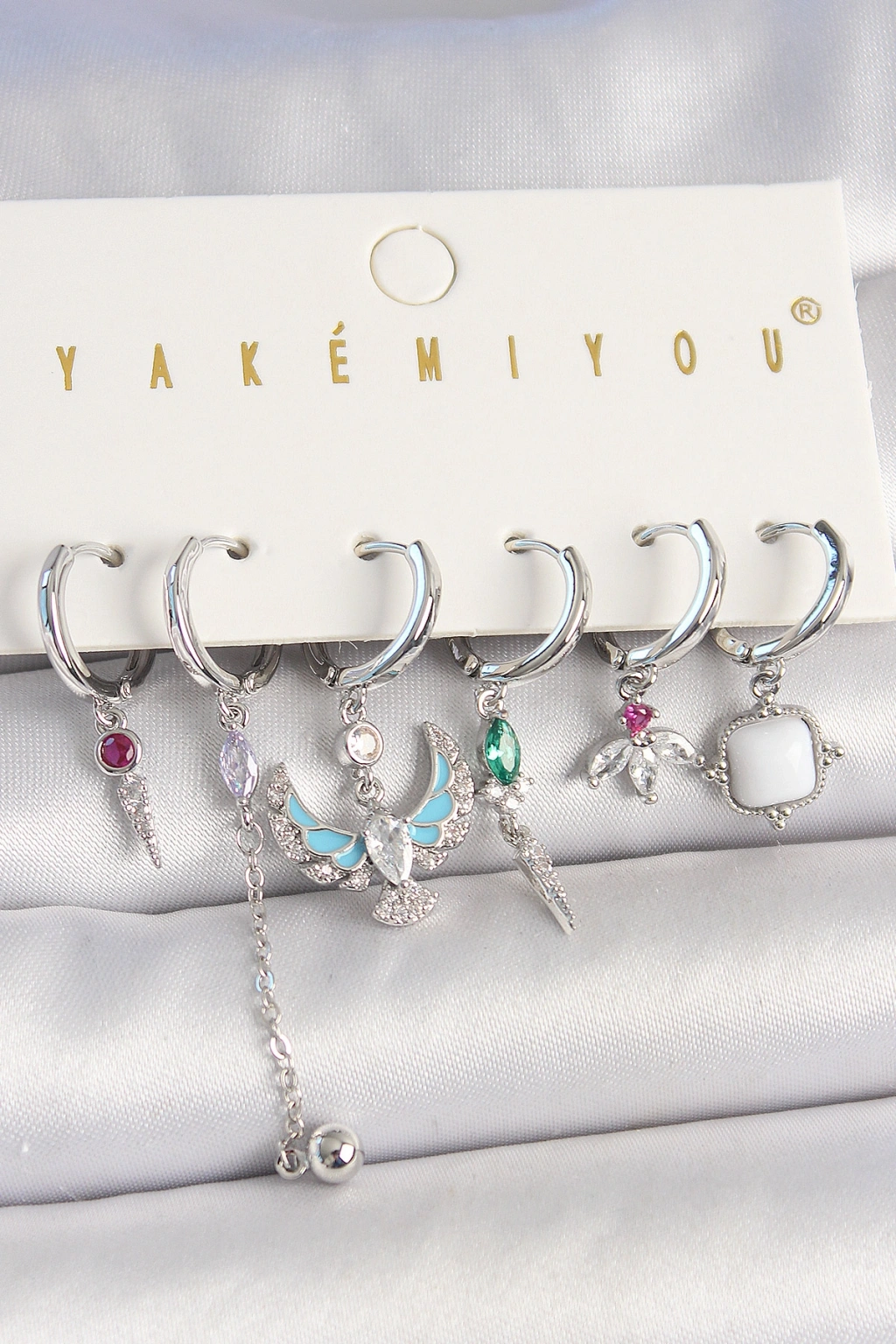 Erb Pirinç Gümüş Renk Zirkon Taşlı Kuş Figür Çiçek Detay 6'Lı Kadın Kombin Küpe