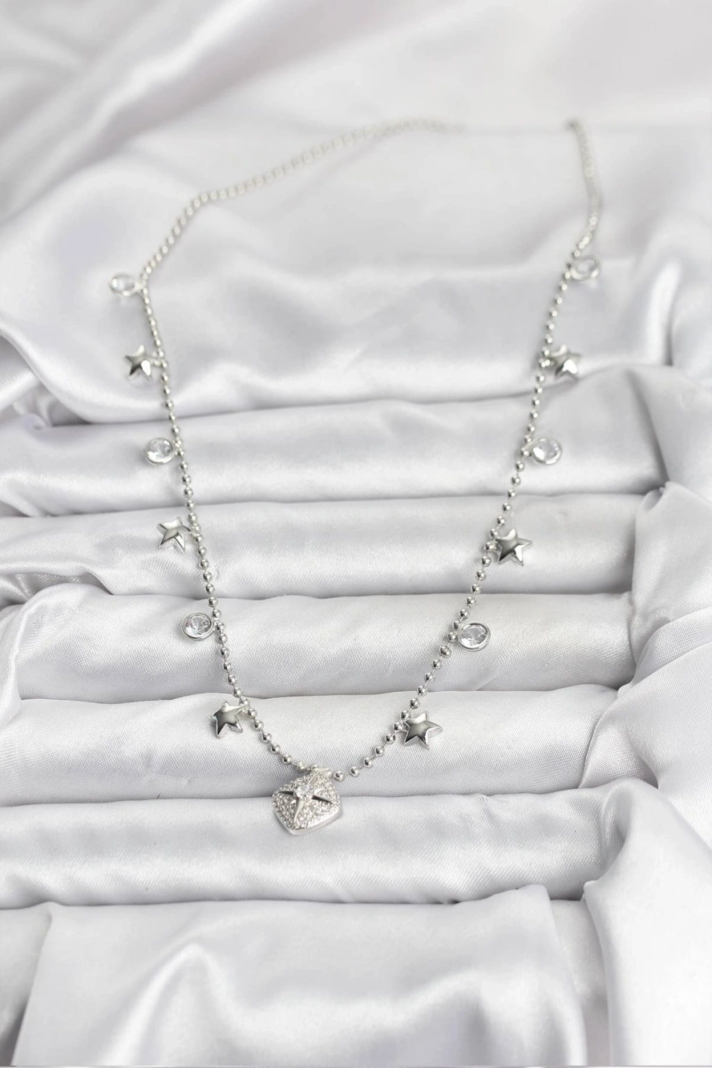 Erb Pirinç Gümüş Renk Zirkon Taşlı Kutup Yıldızı Model Kadın Kolye