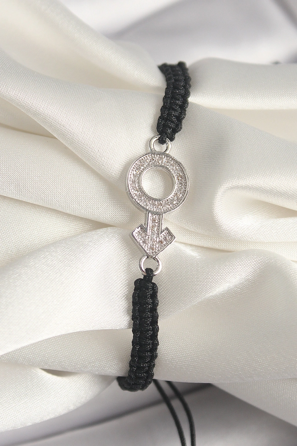 Erb Pirinç Gümüş Renk Zirkon Taşlı Mars Figür Asansörlü Makrome Model Kadın Bileklik