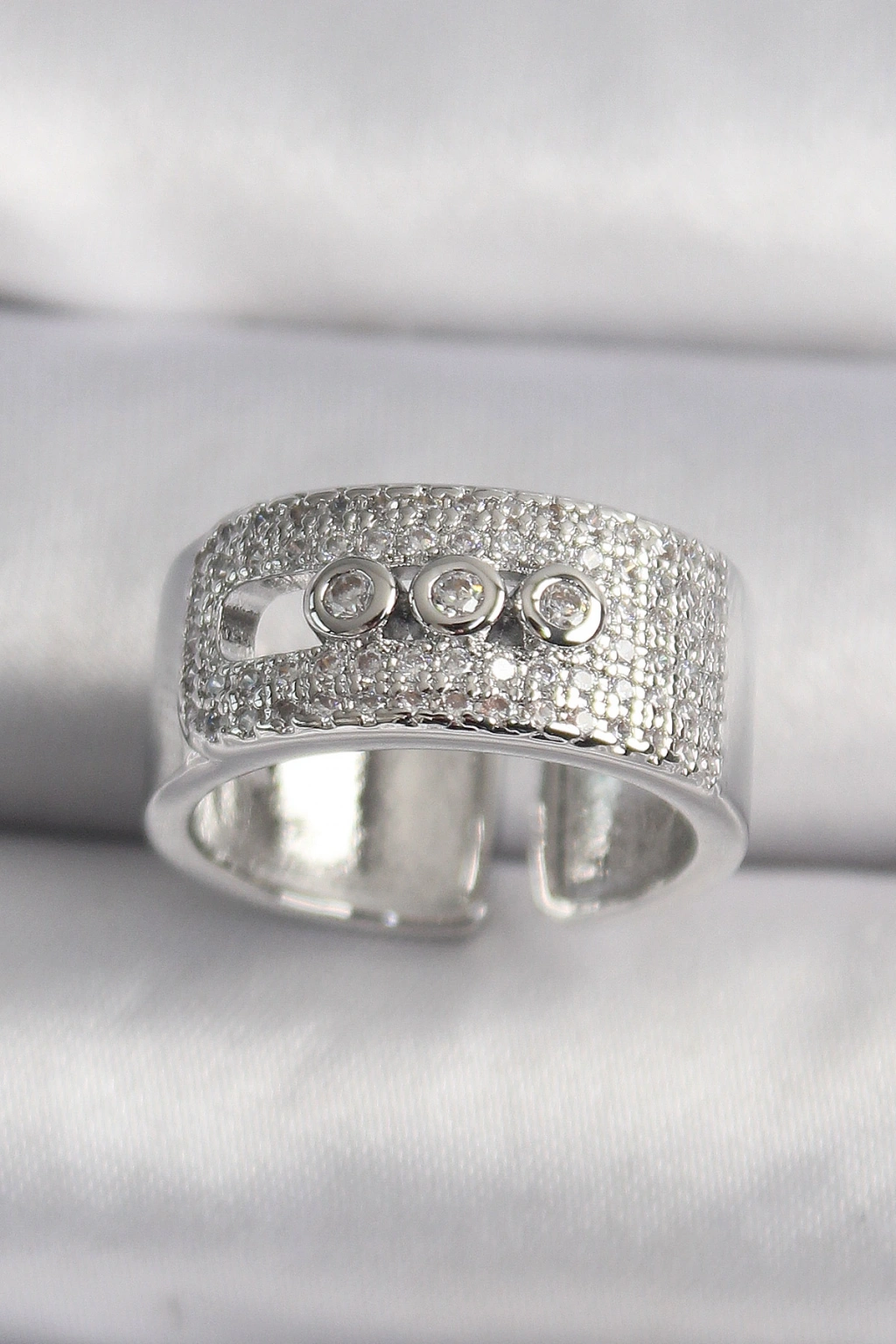 Erb Pirinç Gümüş Renk Zirkon Taşlı Messika Model Kadın Yüzük