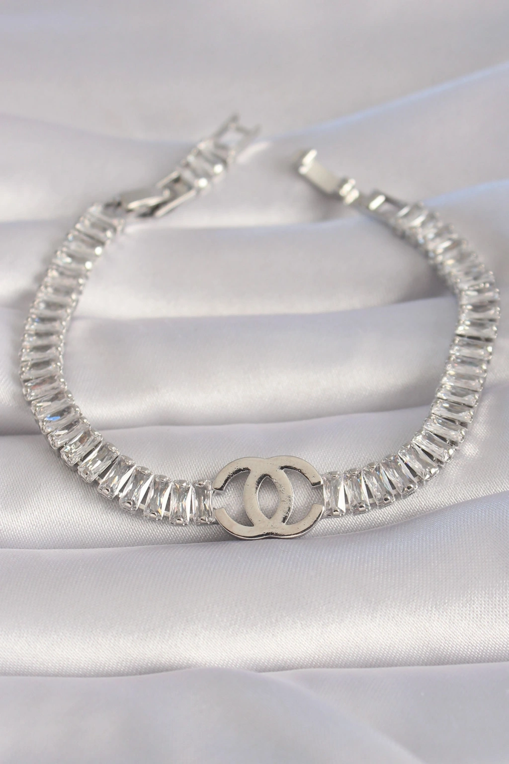 Erb Pirinç Gümüş Renk Zirkon Taşlı Su Yolu Model VIP Seri Kadın Bileklik