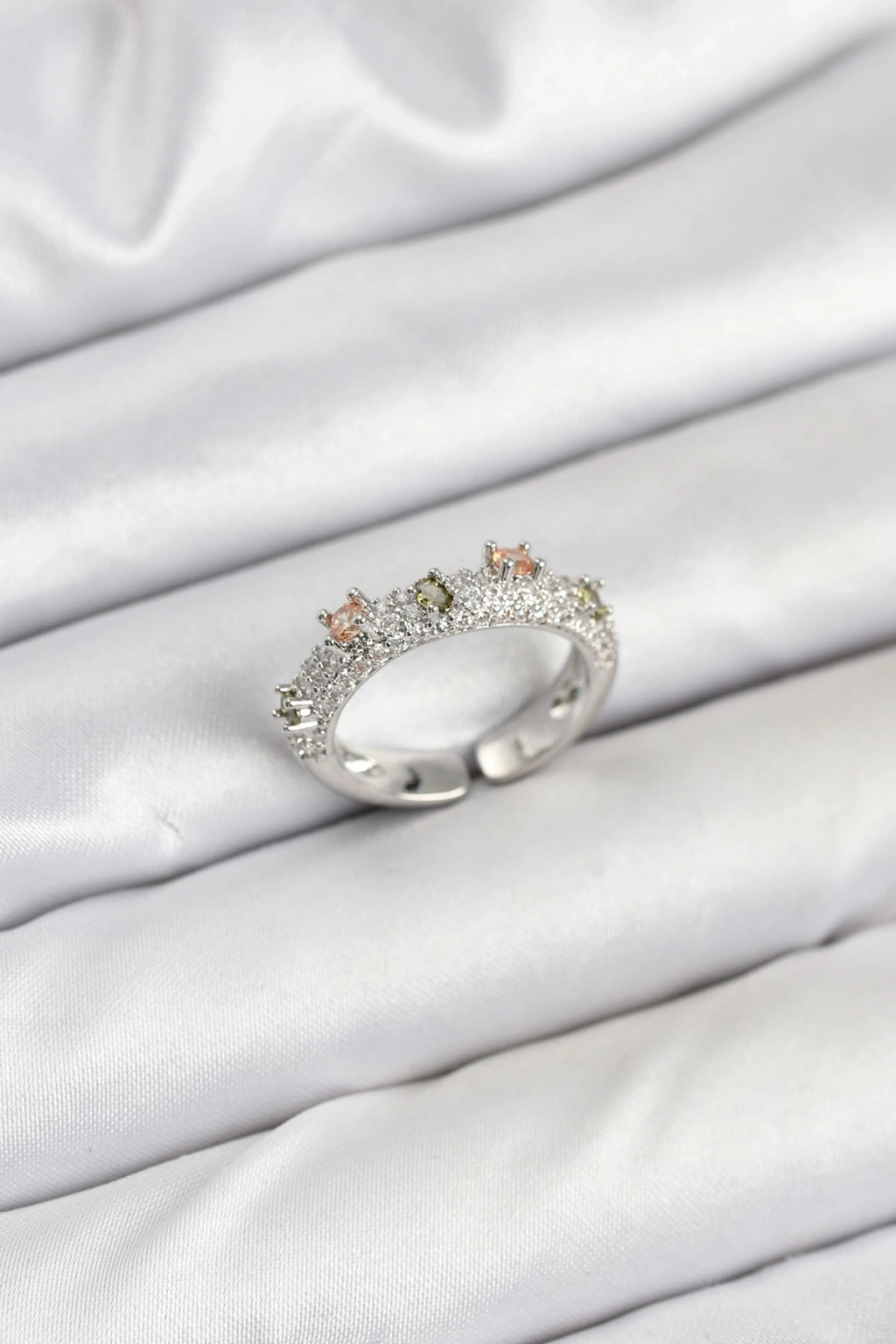 Erb Pirinç Gümüş Renk Zirkon Taşlı Vintage Kadın Yüzük