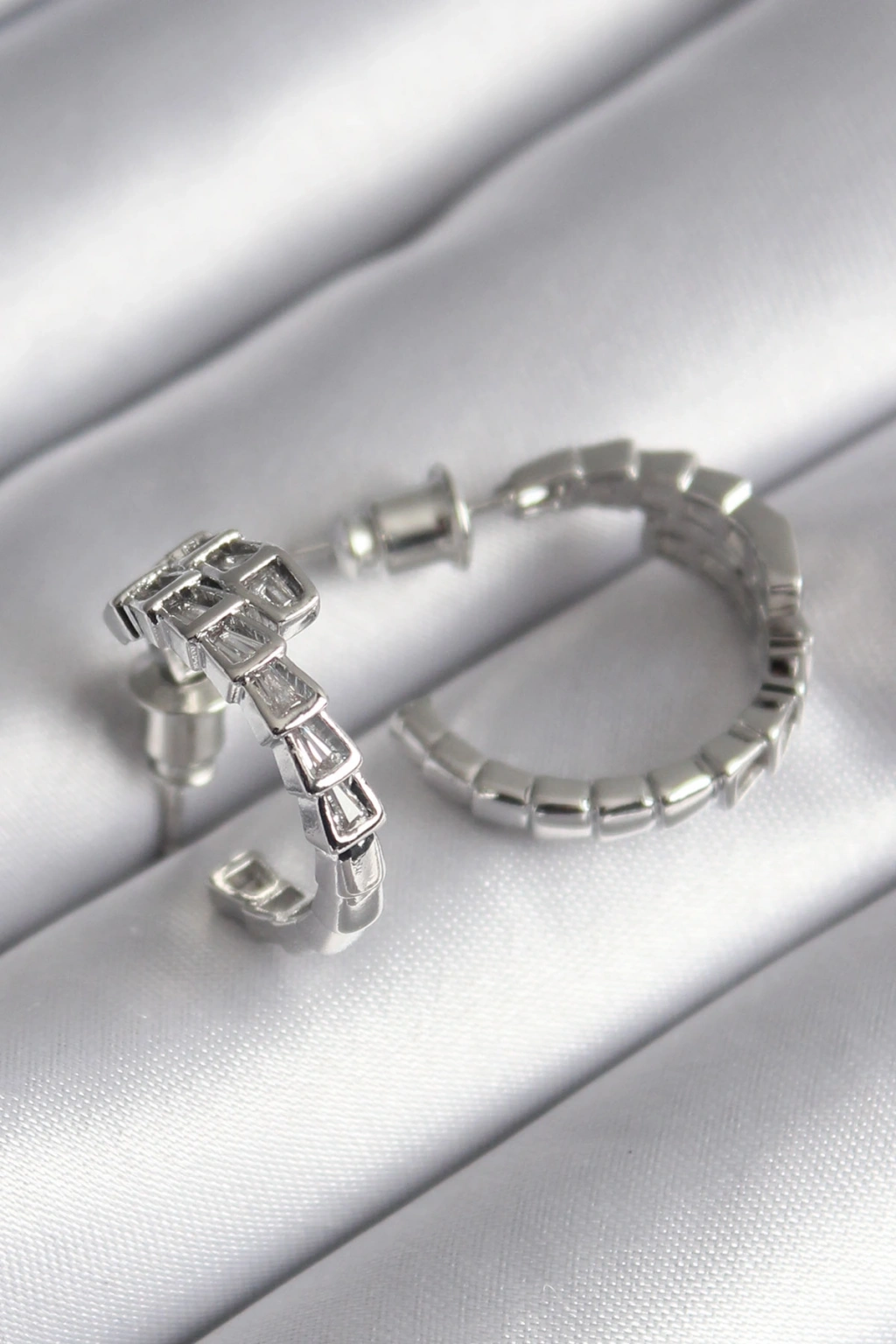 Erb Pirinç Gümüş Renk Zirkon Taşlı Yılan Model Kadın Küpe