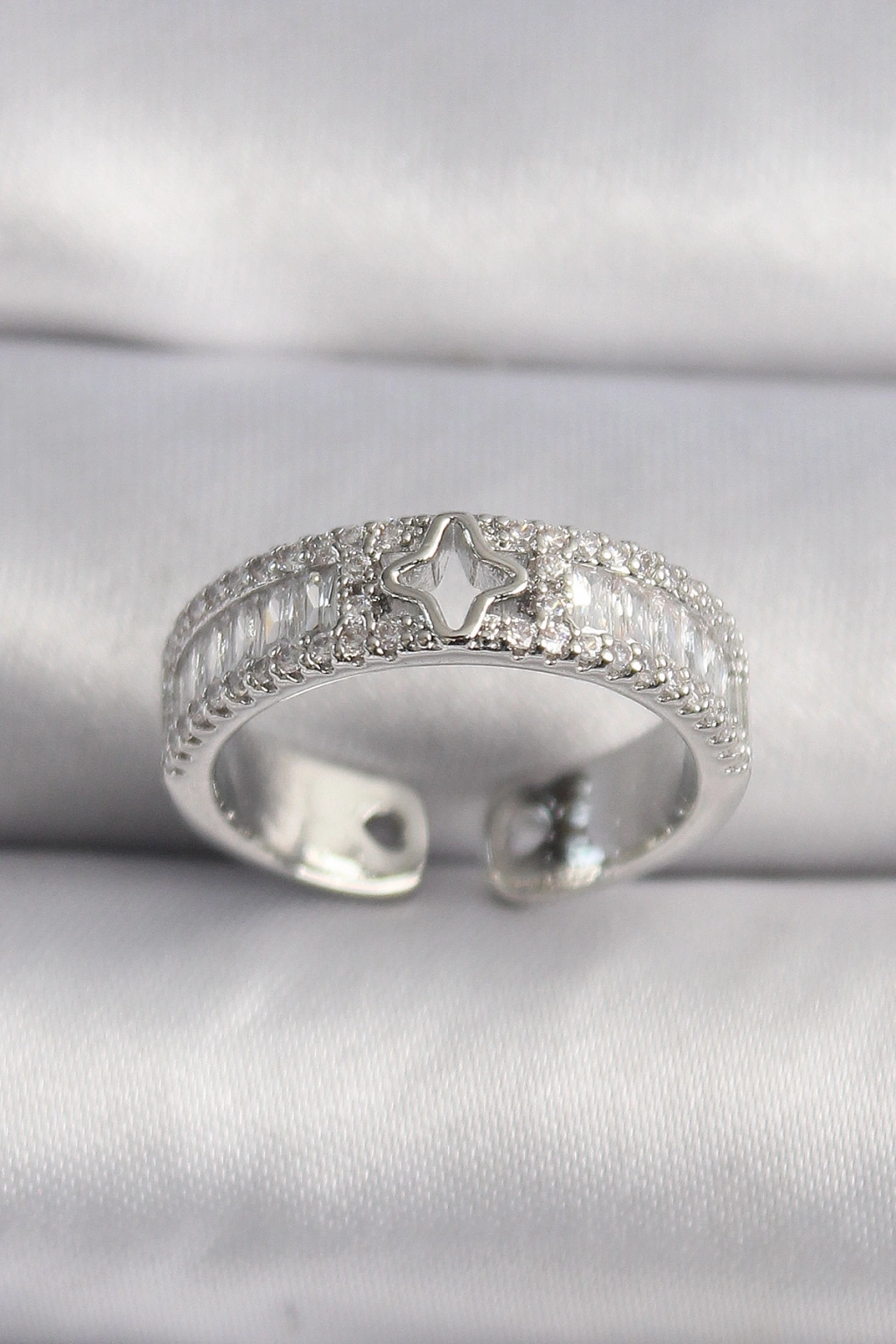 Erb Pirinç Gümüş Renk Zirkon Taşlı Yıldız İşleme VIP Seri Kadın Yüzük