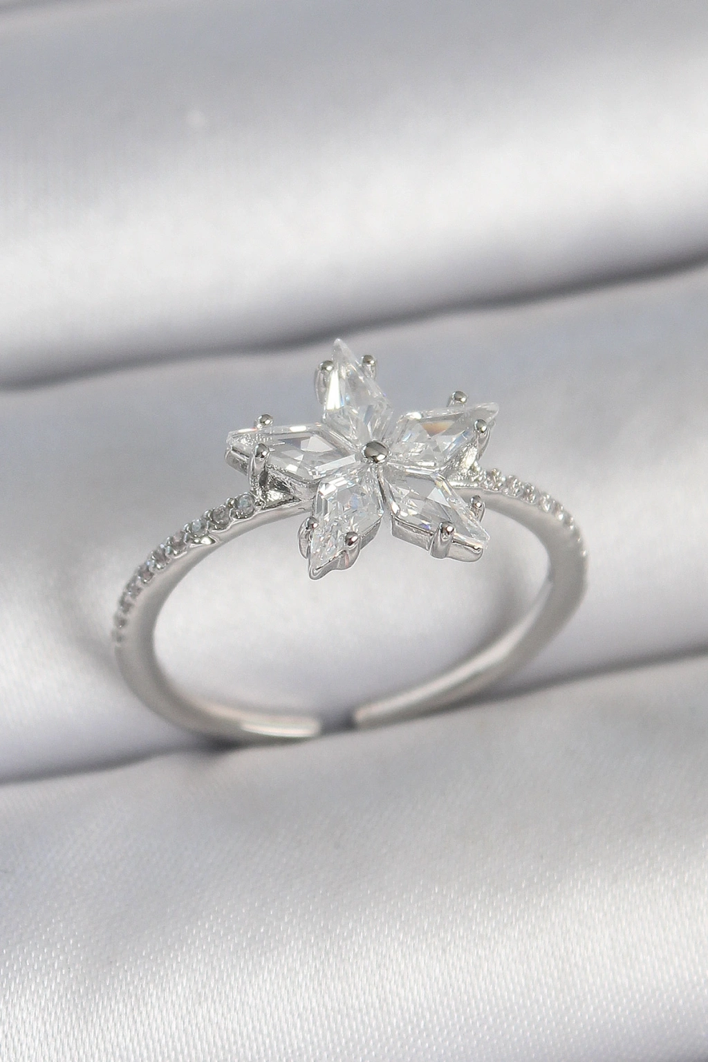 Erb Pirinç Gümüş Renk Zirkon Taşlı Yıldız Model Ayarlanabilir Kadın Yüzük