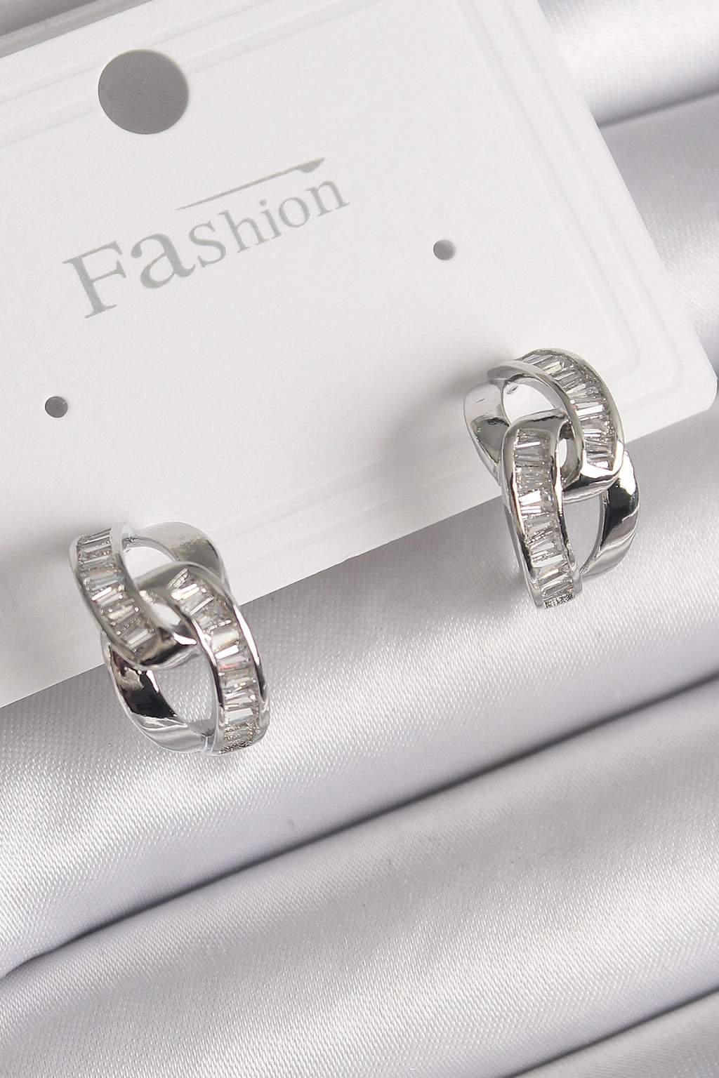 Erb Pirinç Gümüş Renk Zirkon Taşlı Zincir Model Kadın Küpe