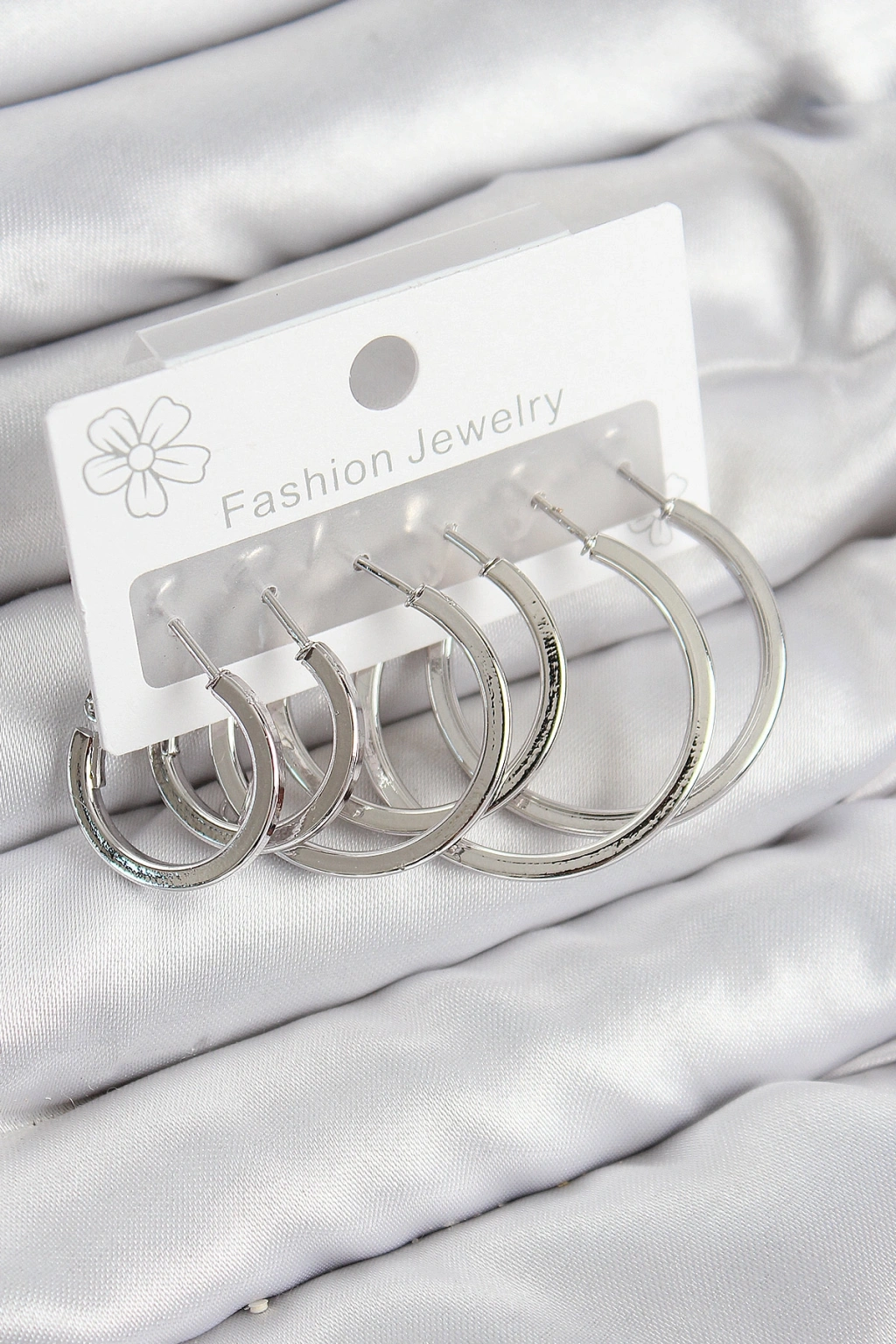 Erb Pirinç Halka Model Gümüş Renk Kadın Set Küpe