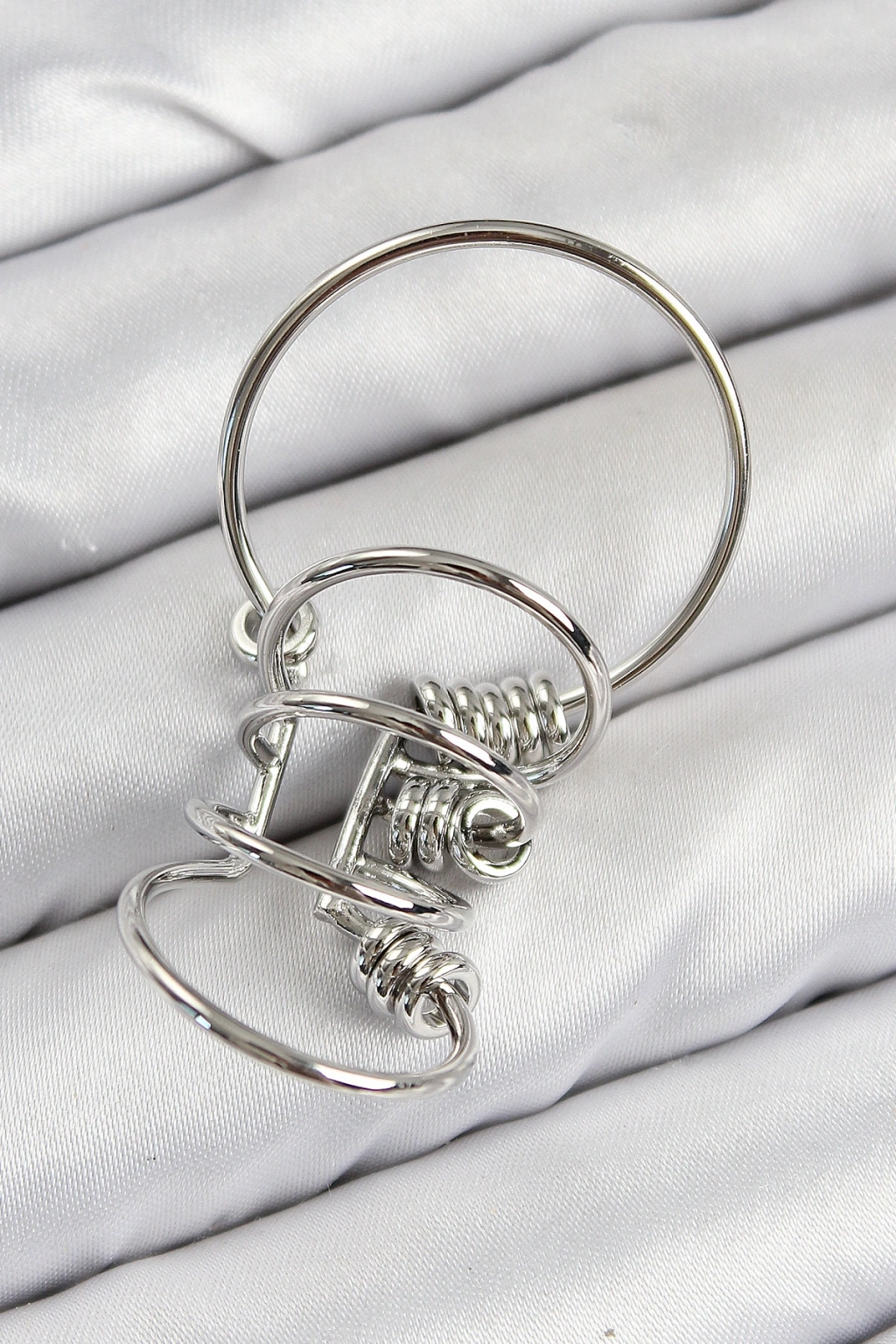 Erb Pirinç Halkalı Model Gümüş Renk Kıkırdak Küpe