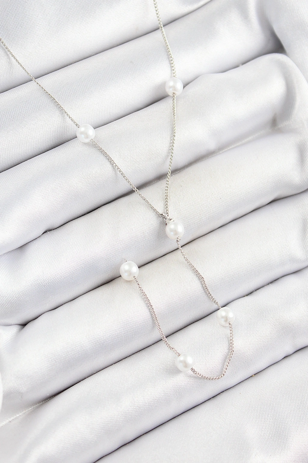 Erb Pirinç İnci Figürlü Y Model Gümüş Renk Kadın Kolye