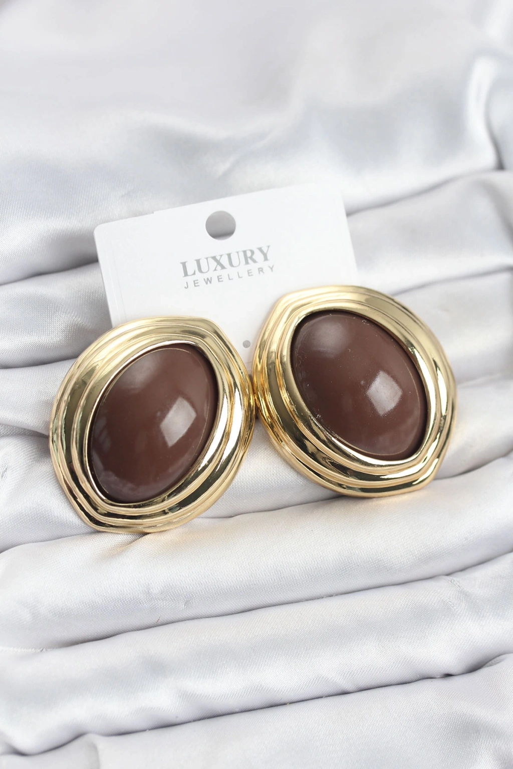 Erb Pirinç Kahverengi Badem Model Vintage Gold Kadın Küpe