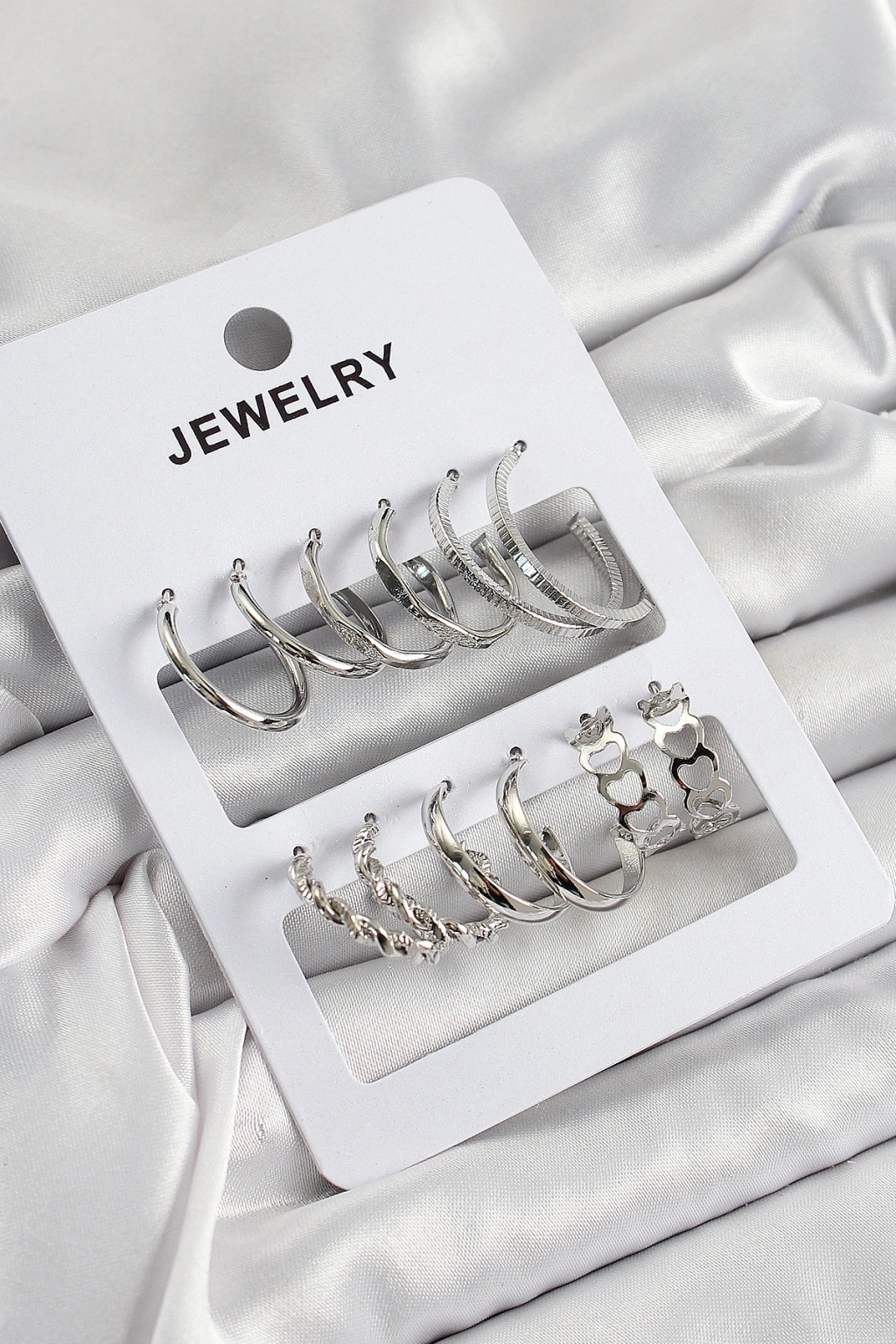 Erb Pirinç Karışık Halka Model Gümüş Renk 6 Çift Kadın Küpe Set