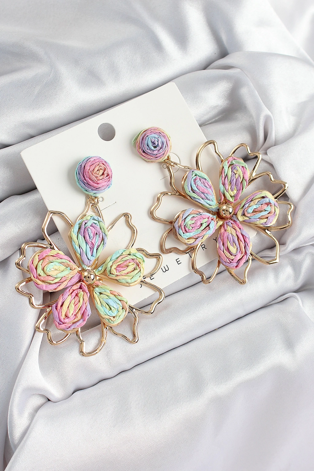Erb Pirinç Rainbow Çiçek Model Gold Renk Kadın Hasır Küpe