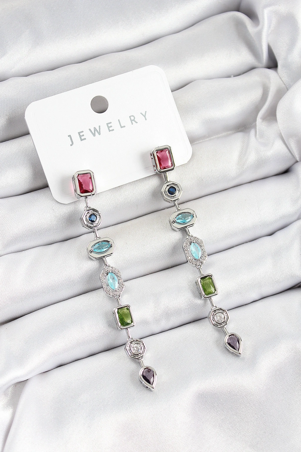 Erb Pirinç Renkli Zirkon Taşlı Sallantılı Model Gümüş Renk Kadın Küpe