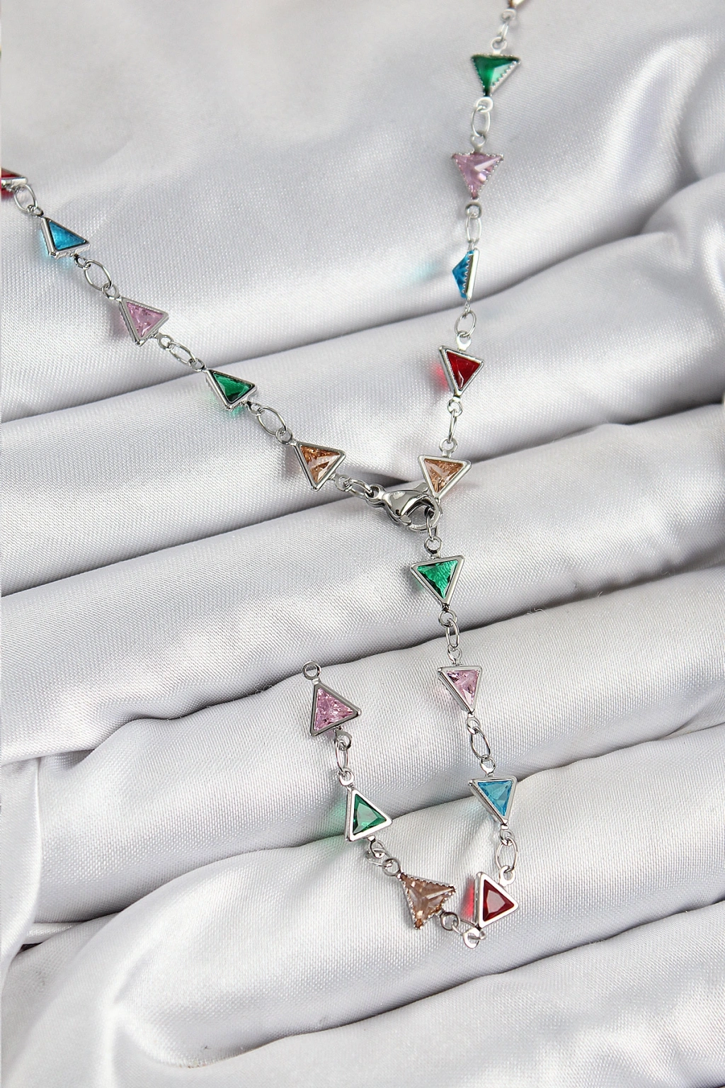 Erb Pirinç Renkli Zirkon Taşlı Üçgen Model Gümüş Renk Kadın Y Kolye