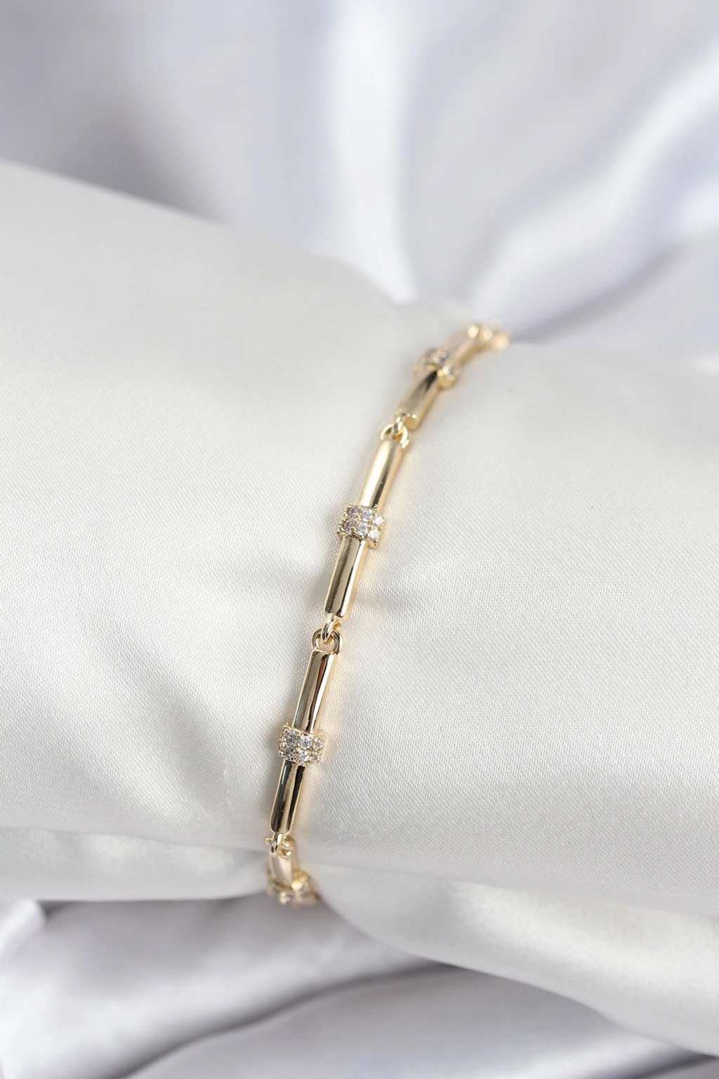 Erb Pirinç VIP Seri Gold Renk Parçalı Model Zirkon Taşlı Kadın Bileklik