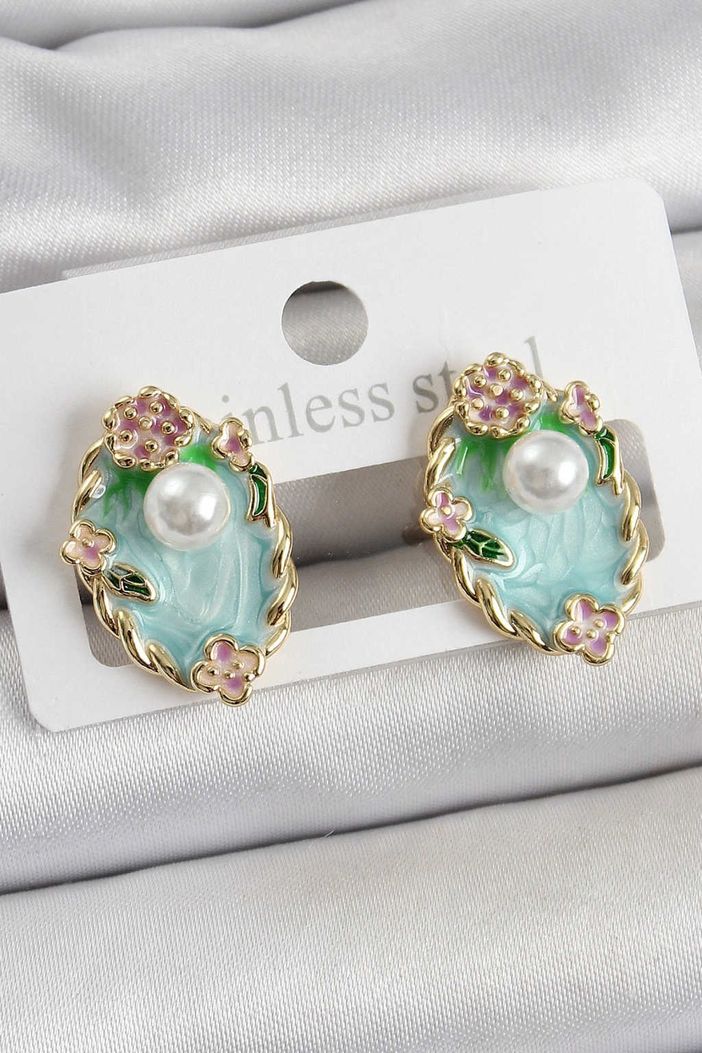 Erb Pirinç Yeşil Mineli İnci Detaylı Sanatsal Portre Model Gold Renk Kadın Küpe