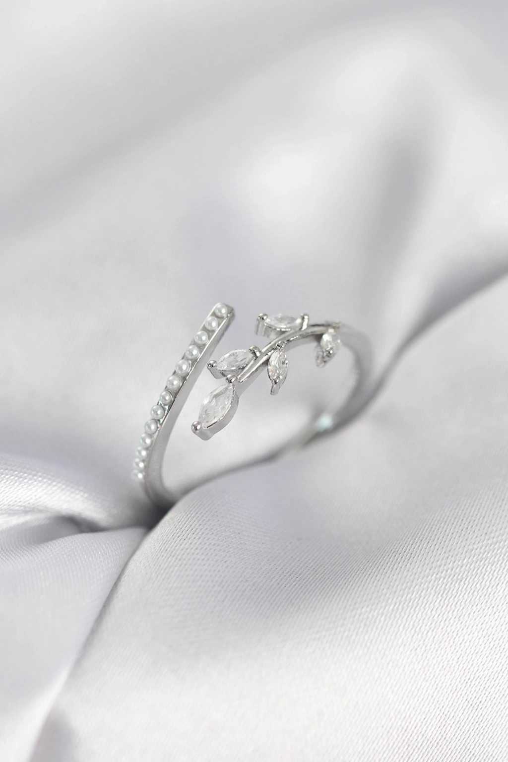 Erb Baget Zirkon Taşlı Gümüş Renk İncili Kadın Yüzük