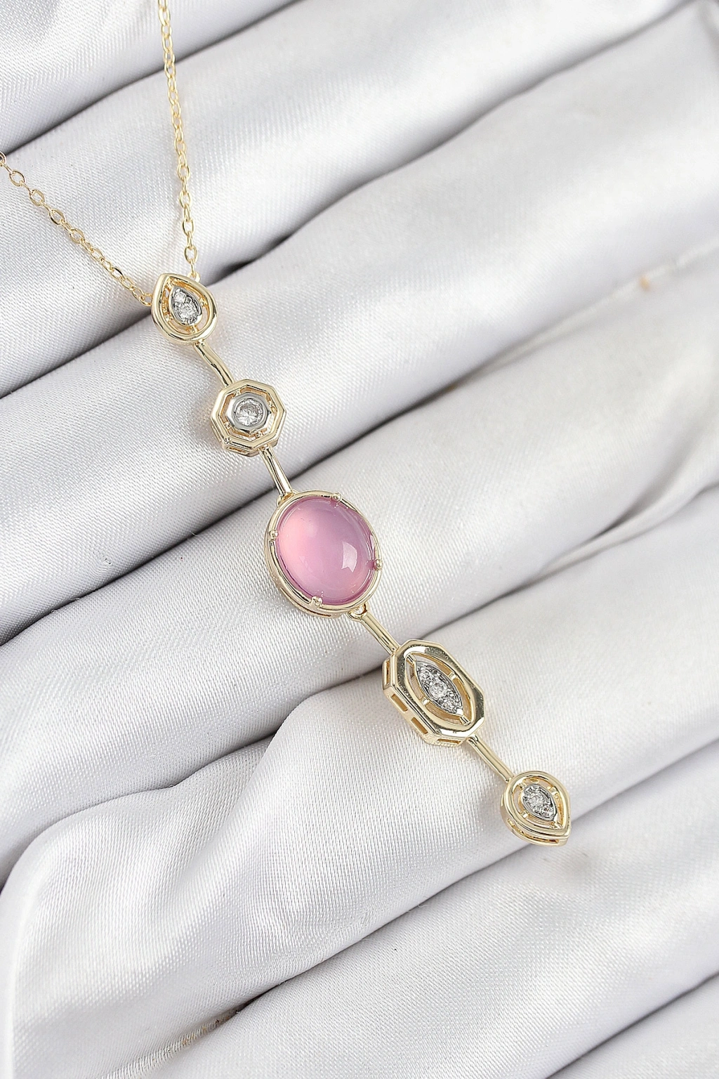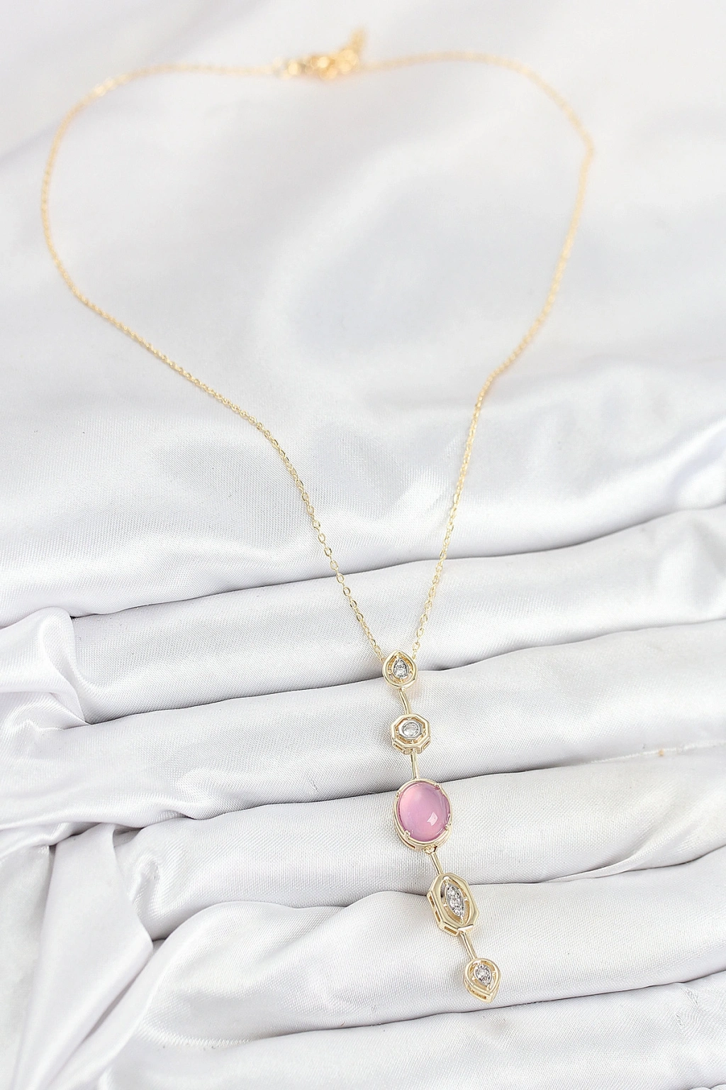 Erb Pirinç Zincir Pembe Gold Renk Zirkon Taşlı Y Kolye