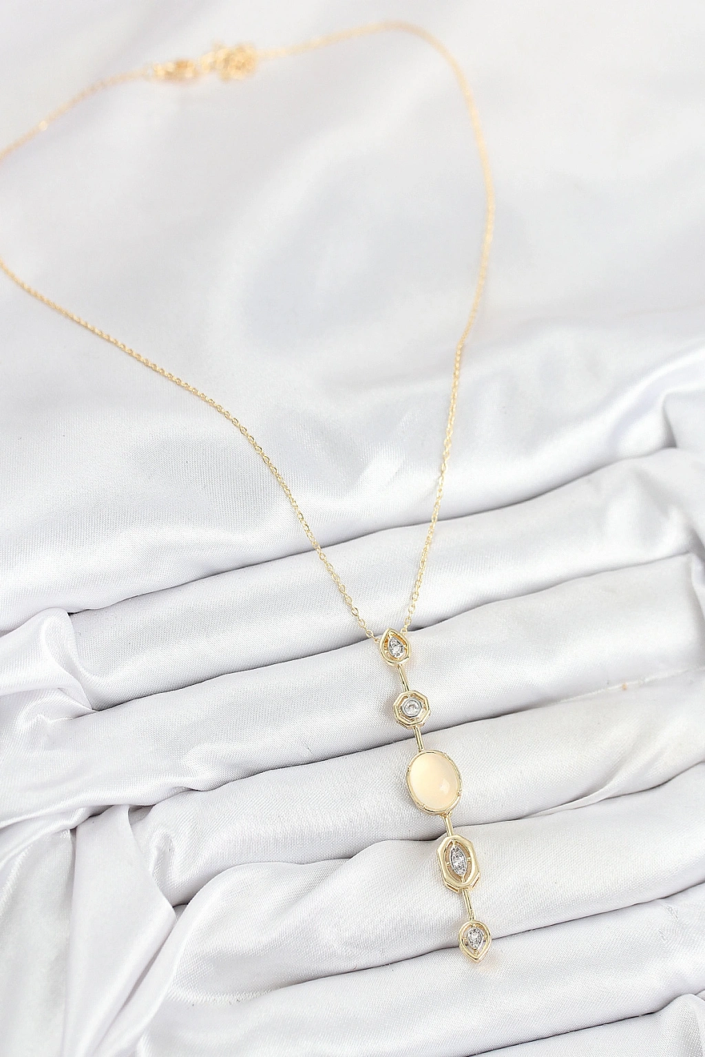 Erb Pirinç Zincir Sarı Gold Renk Zirkon Taşlı Y Kolye