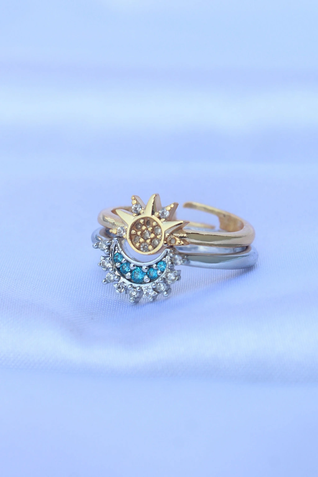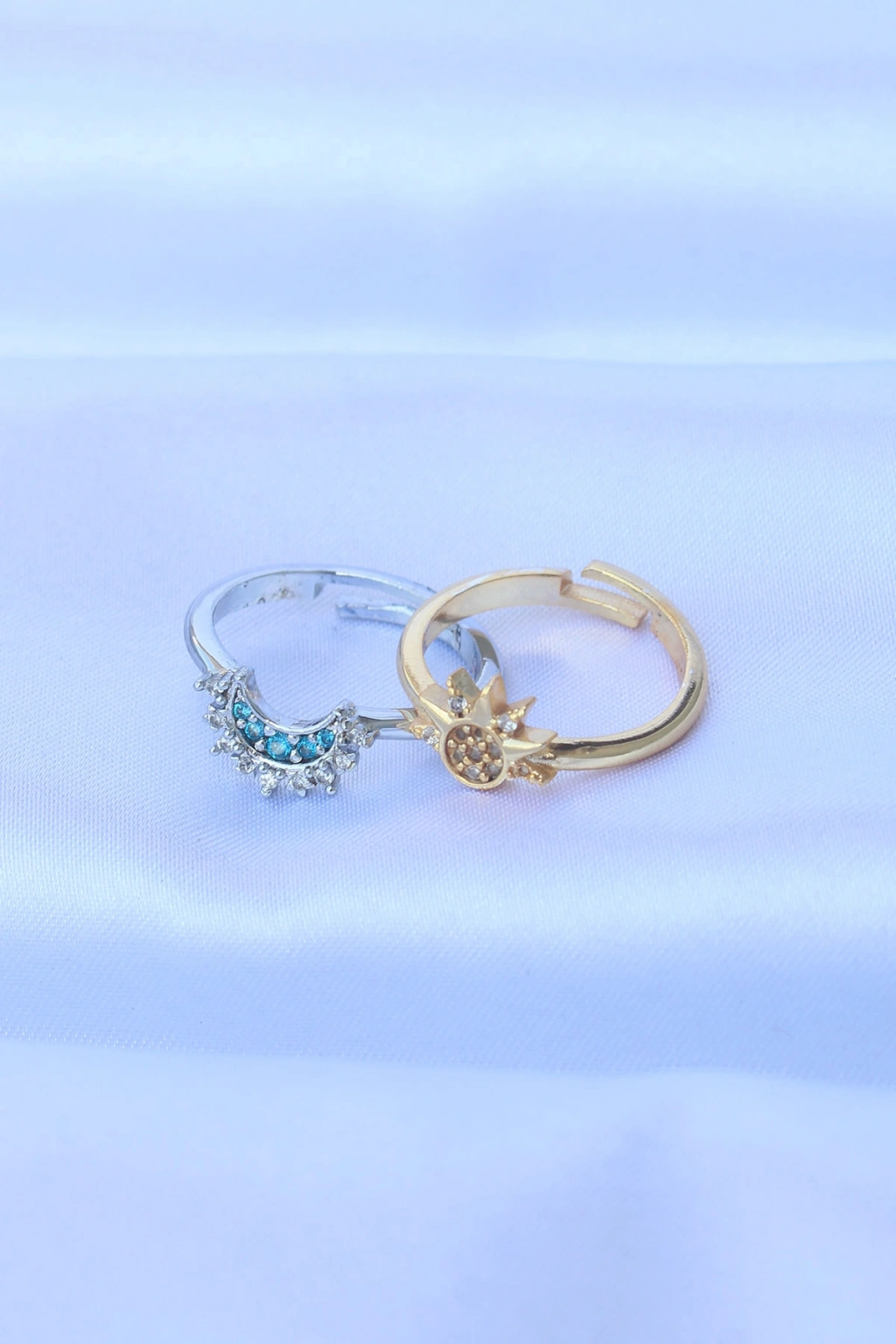 Erb Pirinç Zirkon Taşlı 2li Ayarlanabilir Arkadaş Yüzüğü