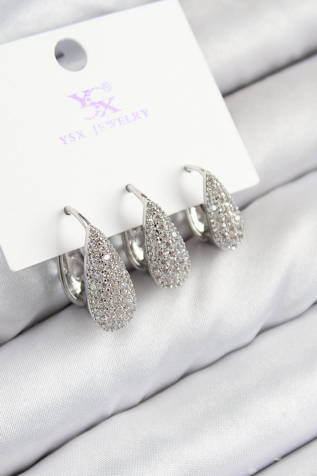 Erb Pirinç Zirkon Taşlı 3'lü Damla Model Gümüş Renk Kadın Küpe