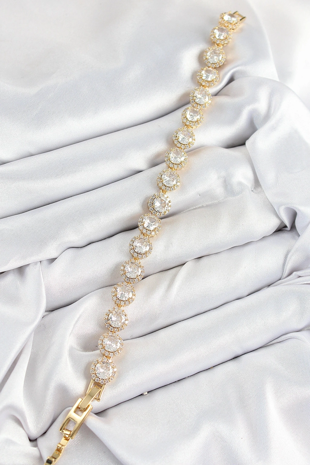 Erb Pirinç Zirkon Taşlı Daire Baget Model Gold Renk VIP Seri Kadın Bileklik