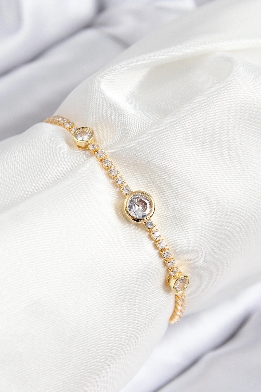 Erb Pirinç Zirkon Taşlı Daire Model Gold Renk Asansörlü Kadın Bileklik