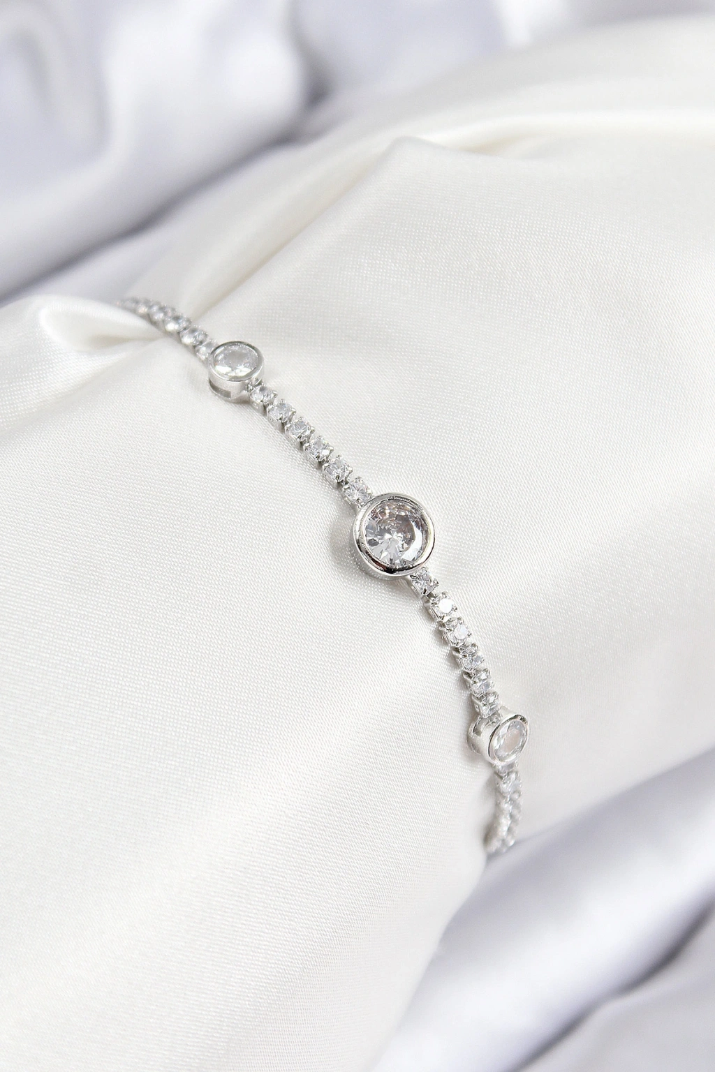 Erb Pirinç Zirkon Taşlı Daire Model Gümüş Renk Asansörlü Kadın Bileklik