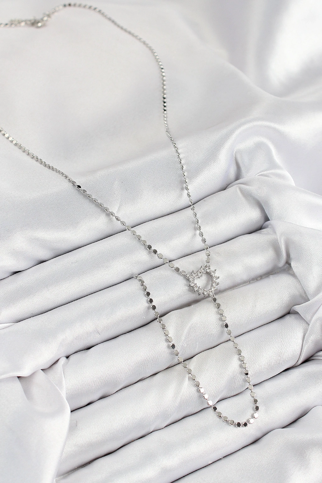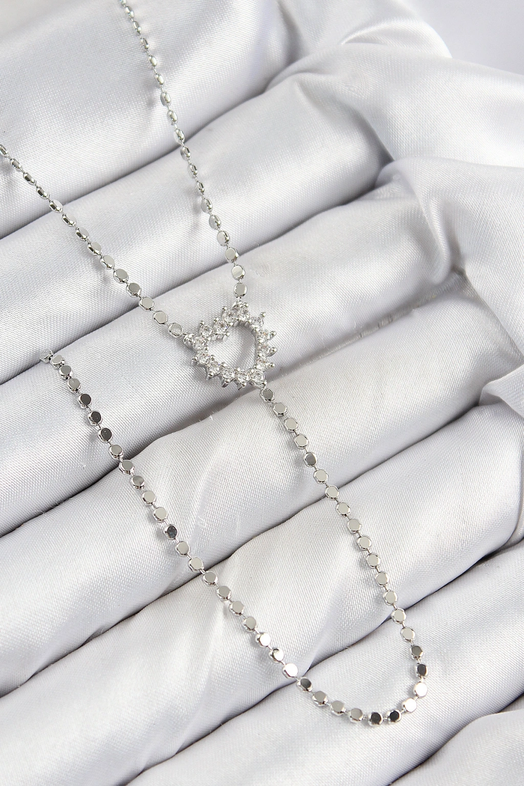Erb Pirinç Zirkon Taşlı Ezme Zincirli Kalp Model Gümüş Renk Y Kolye