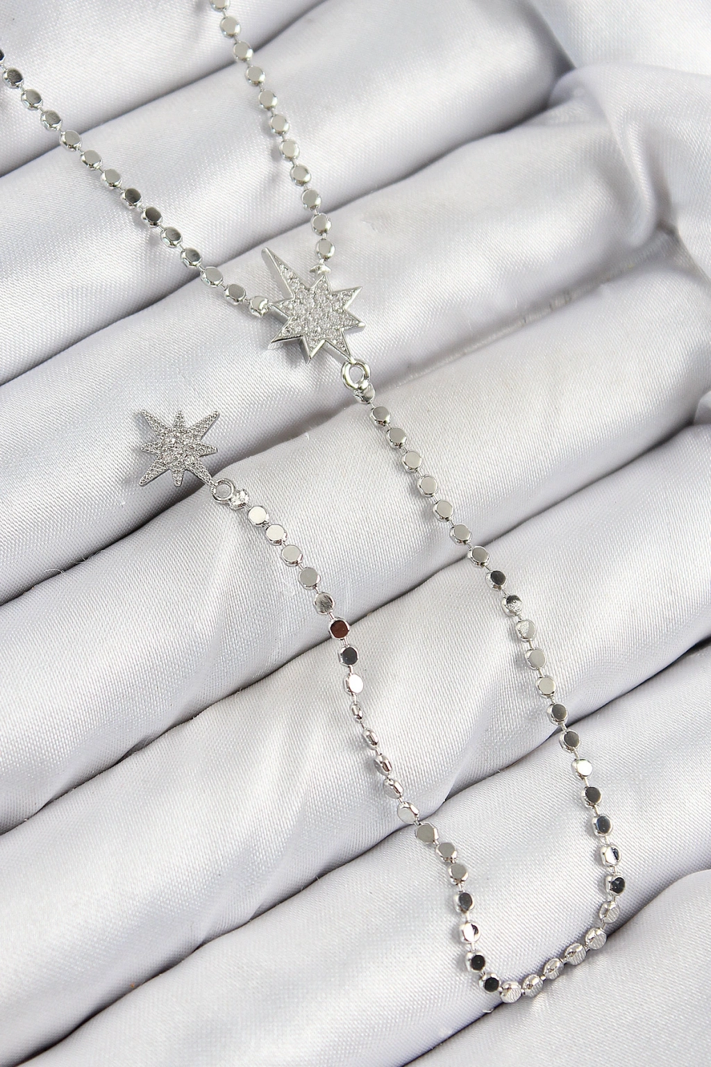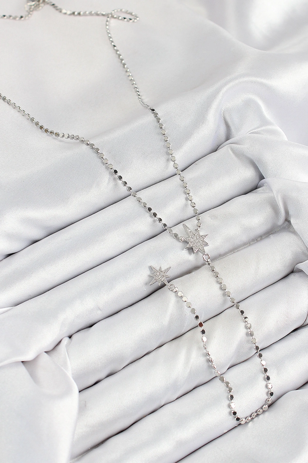 Erb Pirinç Zirkon Taşlı Ezme Zincirli Kutup Yıldızı Model Gümüş Renk Y Kolye