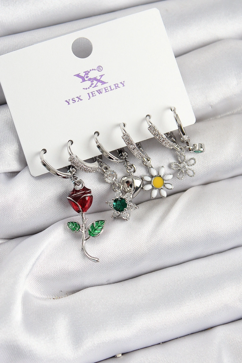 Erb Pirinç Zİrkon Taşlı Gül Ve Papatya Model Gümüş Renk 3'lü Çift Kadın Küpe
