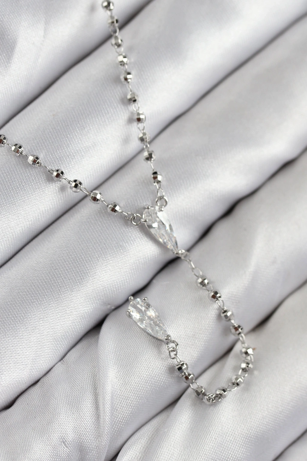 Erb Pirinç Zirkon Taşlı Gümüş Renk Kadın Y Kolye