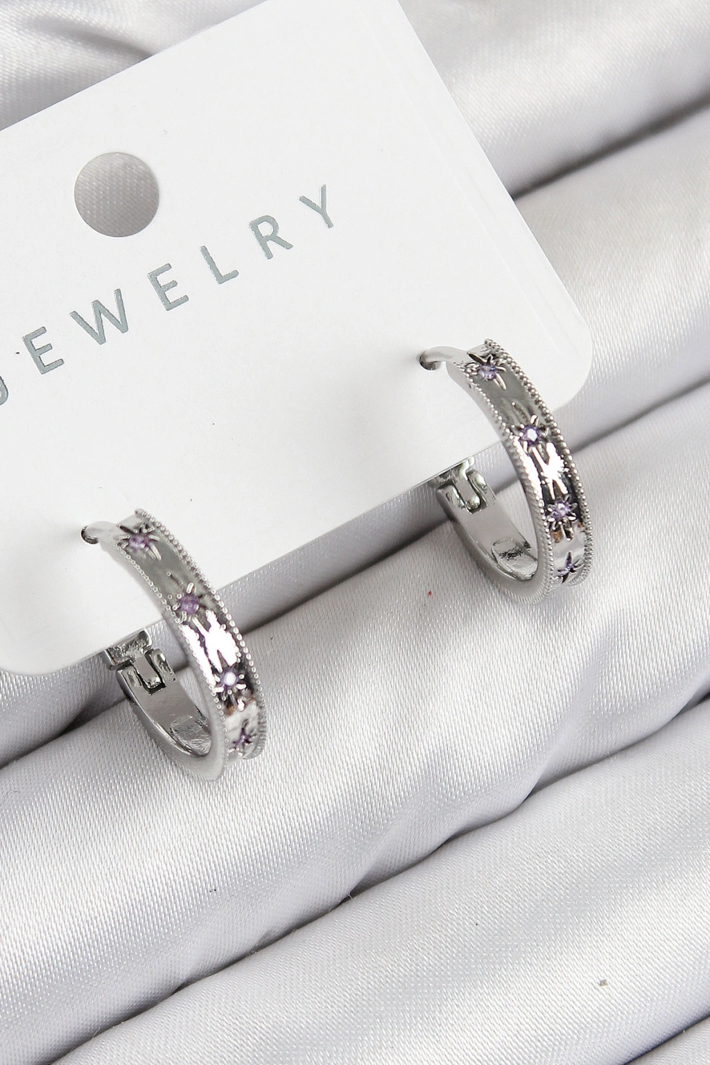Erb Pirinç Zirkon Taşlı Halka Model Gümüş Renk Kadın Küpe