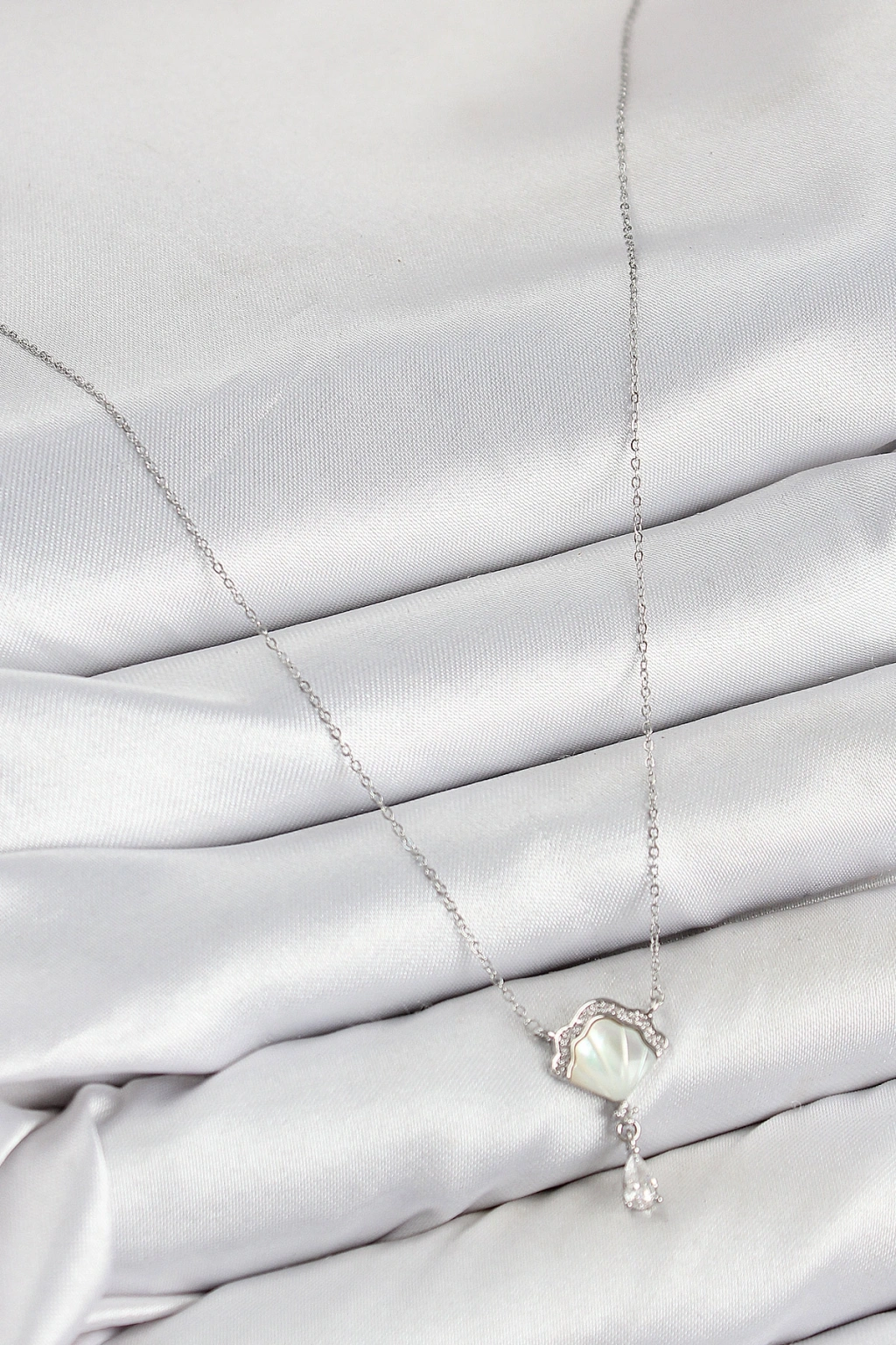Erb Pirinç Zirkon Taşlı İstiridye Model Gümüş Renk Kadın Kolye