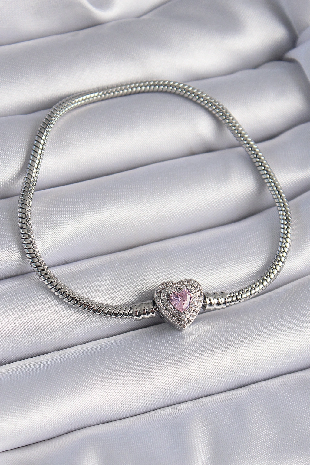 Erb Pirinç Zirkon Taşlı Kalp Figür Charm Model Kadın Bileklik