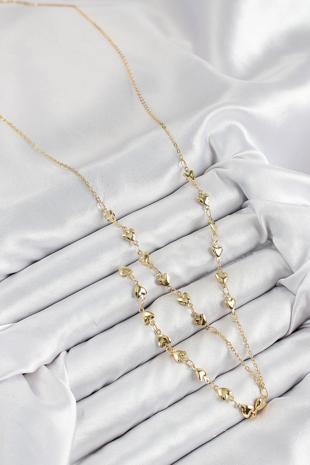 Erb Pirinç Zirkon Taşlı Kalp Model Gold Renk Y Kolye