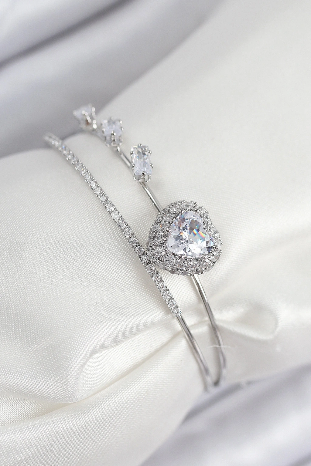 Erb Pirinç Zirkon Taşlı Kalp Model Gümüş Renk Kadın Bileklik