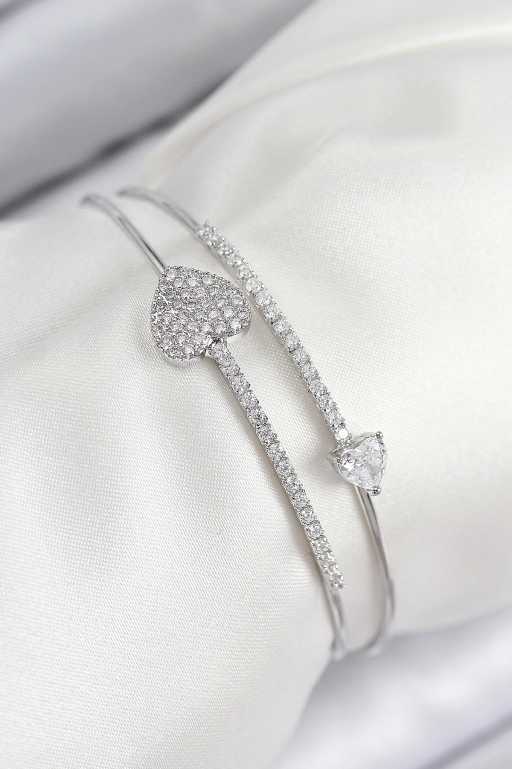 Erb Pirinç Zirkon Taşlı Kalp Model Gümüş Renk Kadın Bileklik