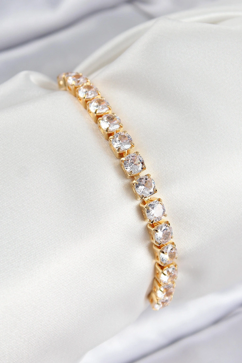 Erb Pirinç Zirkon Taşlı Kare Model Gold Renk Asansörlü Kadın Bileklik