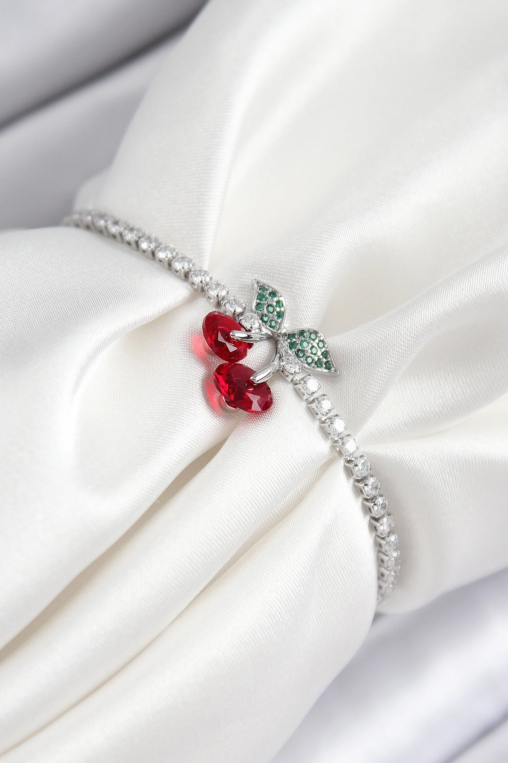 Erb Pirinç Zirkon Taşlı Kiraz Model Gümüş Renk Asansörlü Kadın Bileklik