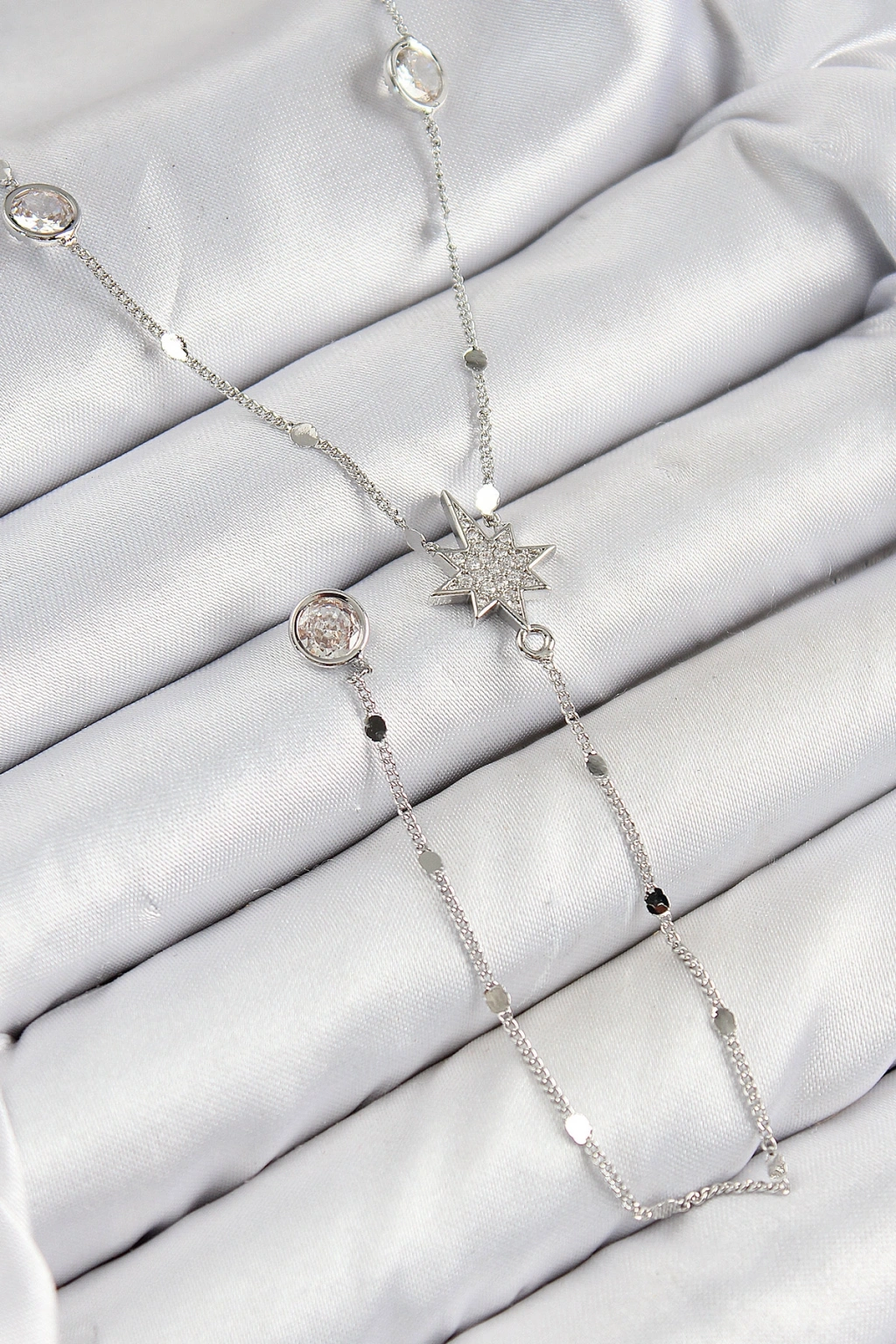 Erb Pirinç Zirkon Taşlı Kutup Yıldızı Model Gümüş Renk Y Kolye