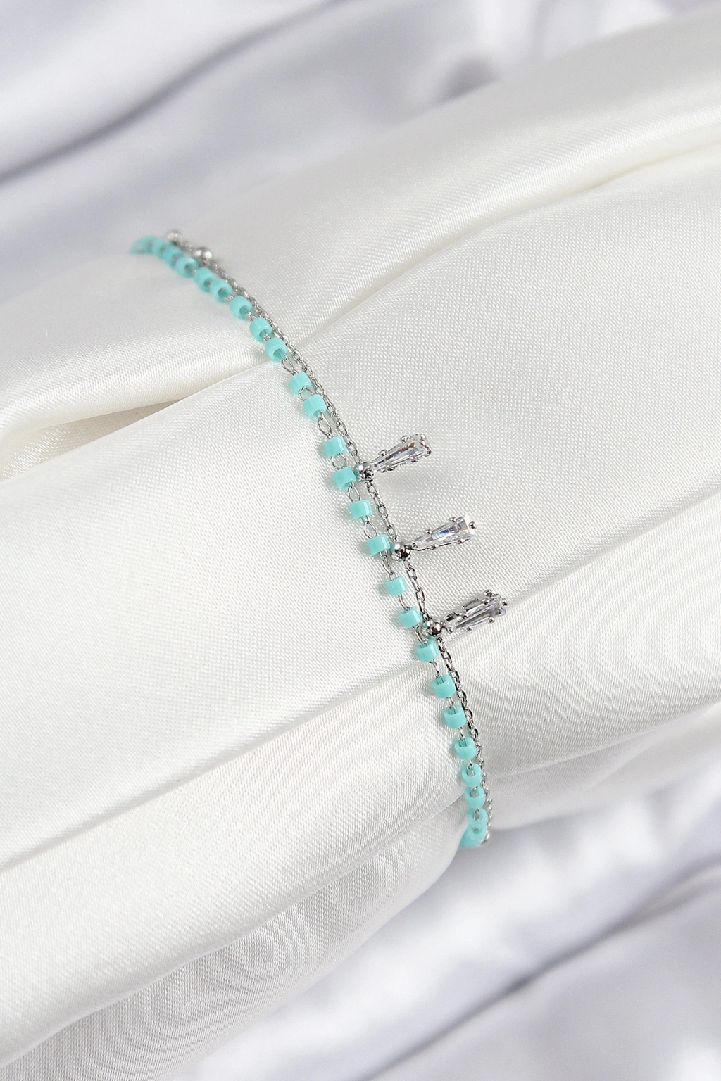 Erb Pirinç Zirkon Taşlı Mavi Boncuklu Model Gümüş Renk Kadın Bileklik