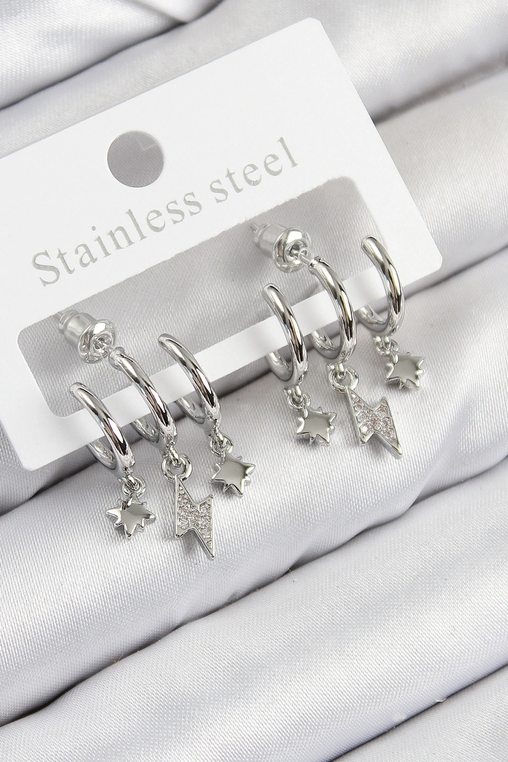 Erb Pirinç Zirkon Taşlı Şimşek Model Gümüş Renk Kadın Küpe