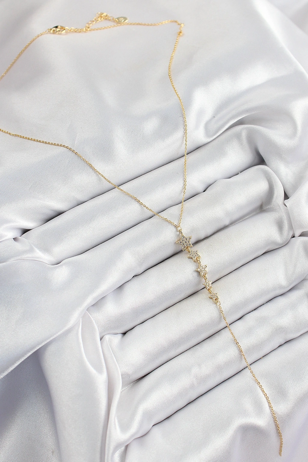 Erb Pirinç Zirkon Taşlı Sıralı Yıldız Figürlü Y Model Gold Renk Kadın Kolye